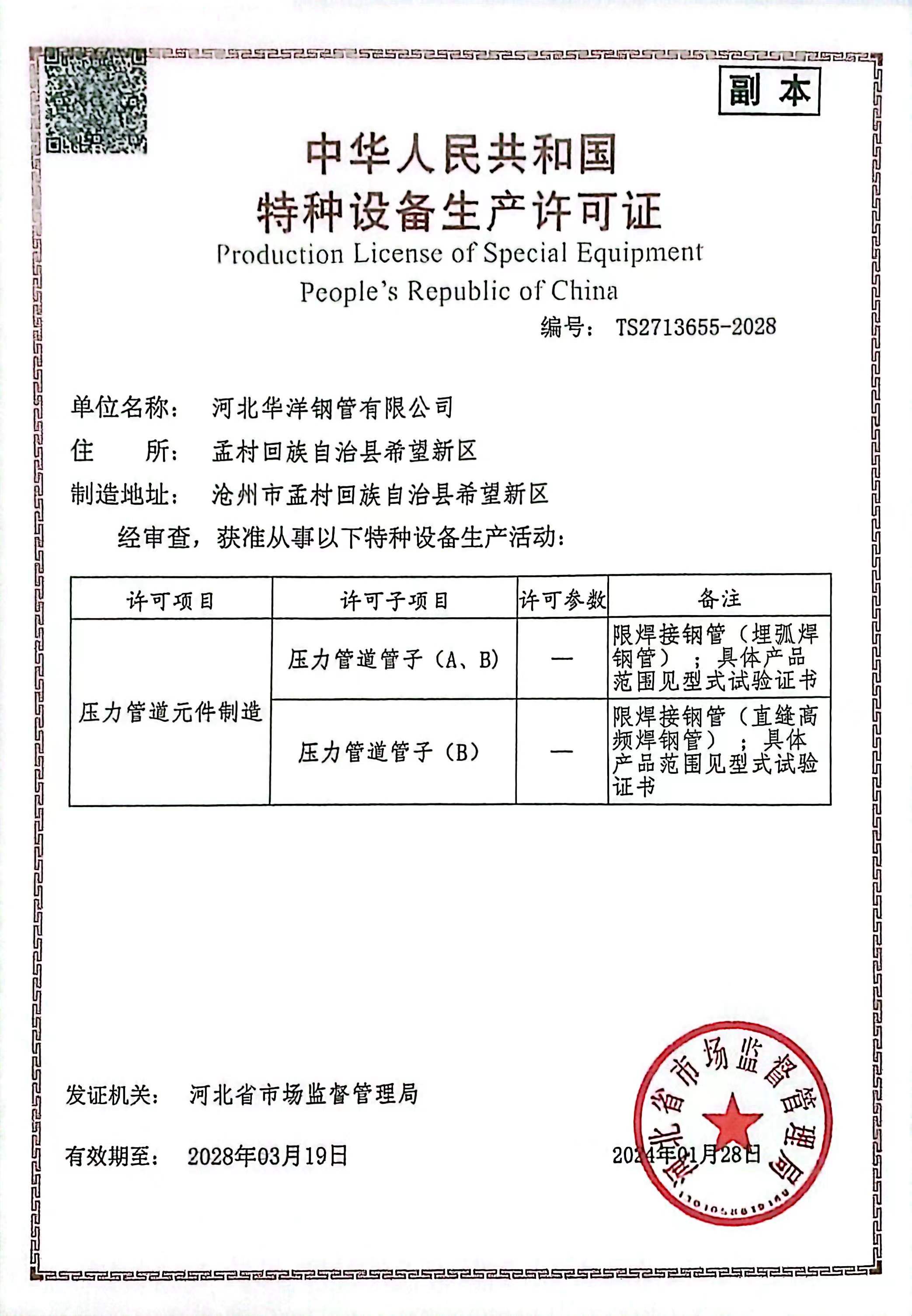 公(gōng)司產品主要用於石油、天然氣、水、蒸汽、煤氣等高、中(zhōng)、低壓流體輸(shū)送管道及打樁、橋梁、建築(zhù)等結構用鋼管,並承擔了國內外標(biāo)誌性工程建(jiàn)設,華(huá)洋作為(wéi)一個綜合(hé)型生產企業,下設河北銘高貿易有(yǒu)限公司,以及在天津石(shí)家莊、山東、四川、廣州等地(dì)設立(lì)有3家分公司和5個辦事處。產品銷往各個城市(shì)井出口東南亞、中東、歐美等八十多(duō)個地區,在國內外享有很高的聲(shēng)譽。