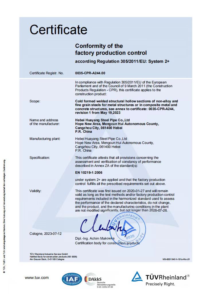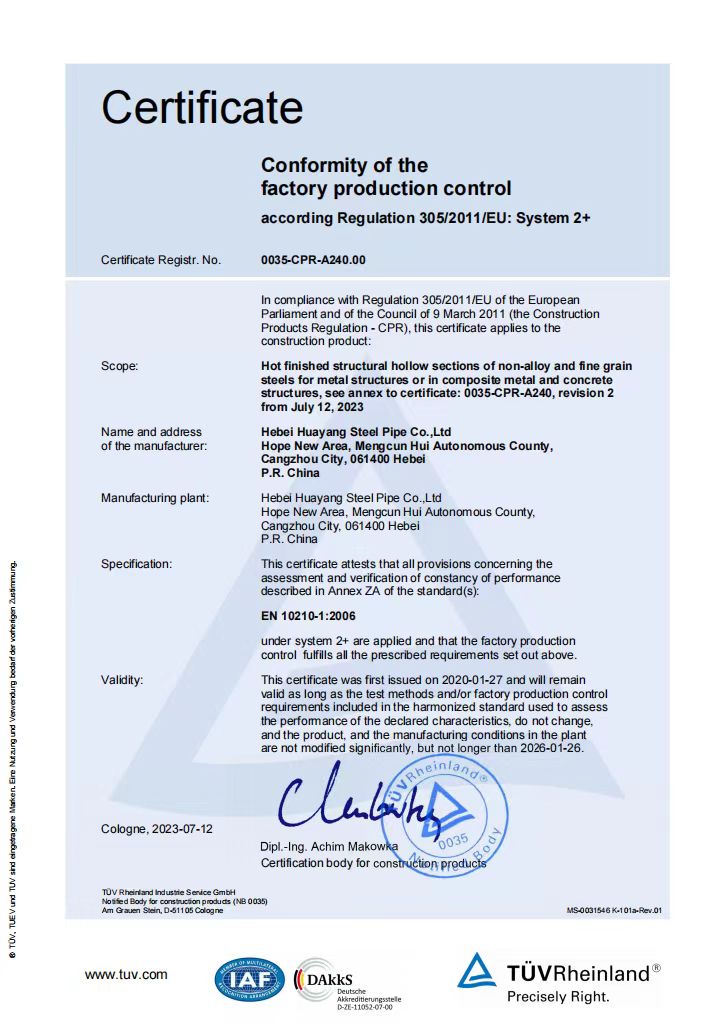 公司(sī)現有17條新型的自動(dòng)化鋼管生產線,包括Φ73-660.4高頻直縫焊鋼管生產線14條、Φ406.4-Φ1422.4直縫雙麵埋弧焊鋼管生(shēng)產線3條,並配備有一(yī)條防腐生產線,可進行3PE、2PE、FBE、2PP、3PP防腐處理,同時還可提供鋼管深加工服務。公(gōng)司擁(yōng)有先(xiān)進的理化實驗室,可承(chéng)擔鋼(gāng)管的各項物理及化學檢測與試驗。公司先(xiān)後取(qǔ)得了ISO9001質量管理體係認證、ISO14001環境管理(lǐ)體係認(rèn)證、ISO45001職業健康安全管理體係認證、特種設備製造許可證、API5L和API2B認(rèn)證證書、歐盟CE認證、俄羅斯GOST認(rèn)證、中海油入網證、安(ān)全生產標準化二級企業(yè)等標準質量體係認證。